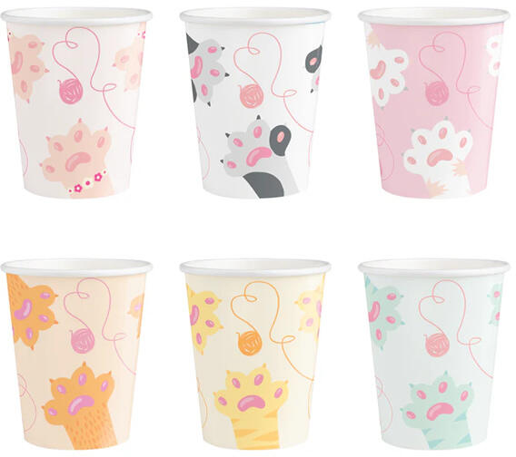Party pohár, 6 db/csomag, 220ml. Színes cicás mintákkal.